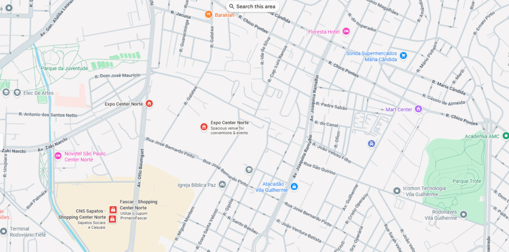 Em apps de direção (Waze, Google Maps), digite “Expo Center Norte” para destino.