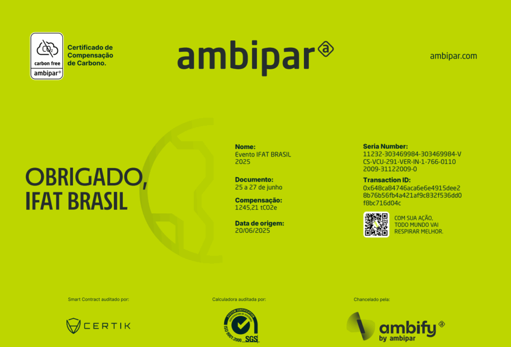 Você sabia que a IFAT Brasil 2025 contou com um projeto de descarbonização realizado pela Ambify, seguindo os protocolos 1 e 2 do GEE?